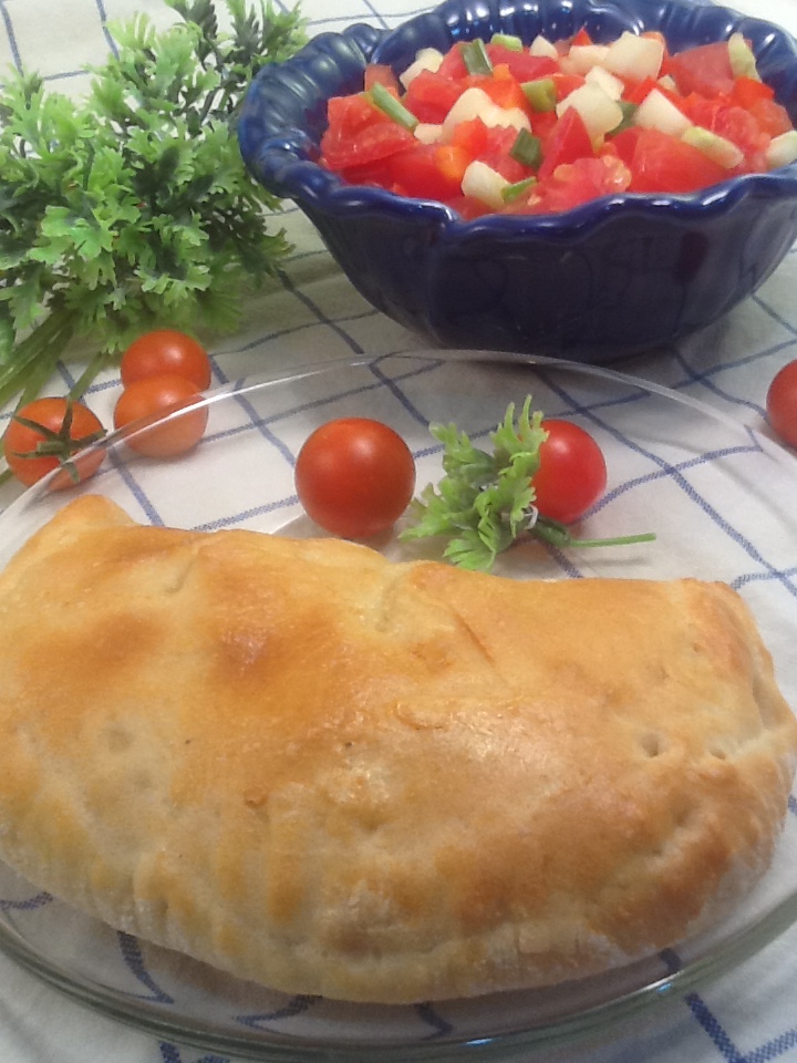 Prepare the filling while the dough is rising. Into a mixing bowl blend the cheese, half of the egg, the pepper, garlic salt, and salt. Into a smaller bowl make an egg wash by beating the other half of the egg and 1 tablespoon water.