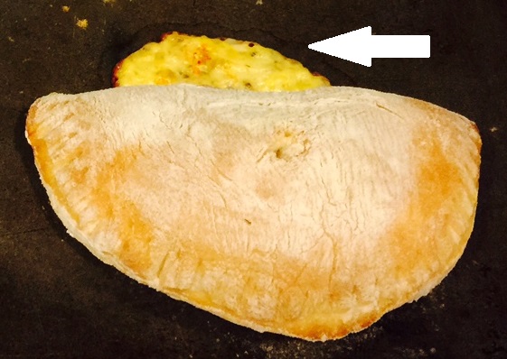 UPDATE: I’ve just discovered an even better method to prevent leakage: form 12 oblong cheese balls from the filling, place on waxed paper, and freeze. Place frozen balls on dough circles, wet edges with water, and fold dough over cheese ball, being careful not to poke the frozen cheese through the dough.