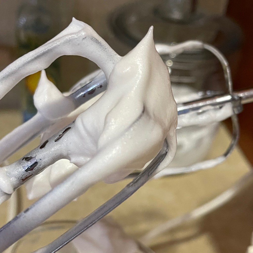 Using an electric mixer on high, beat the egg whites and cream of tartar together until stiff peaks form.
