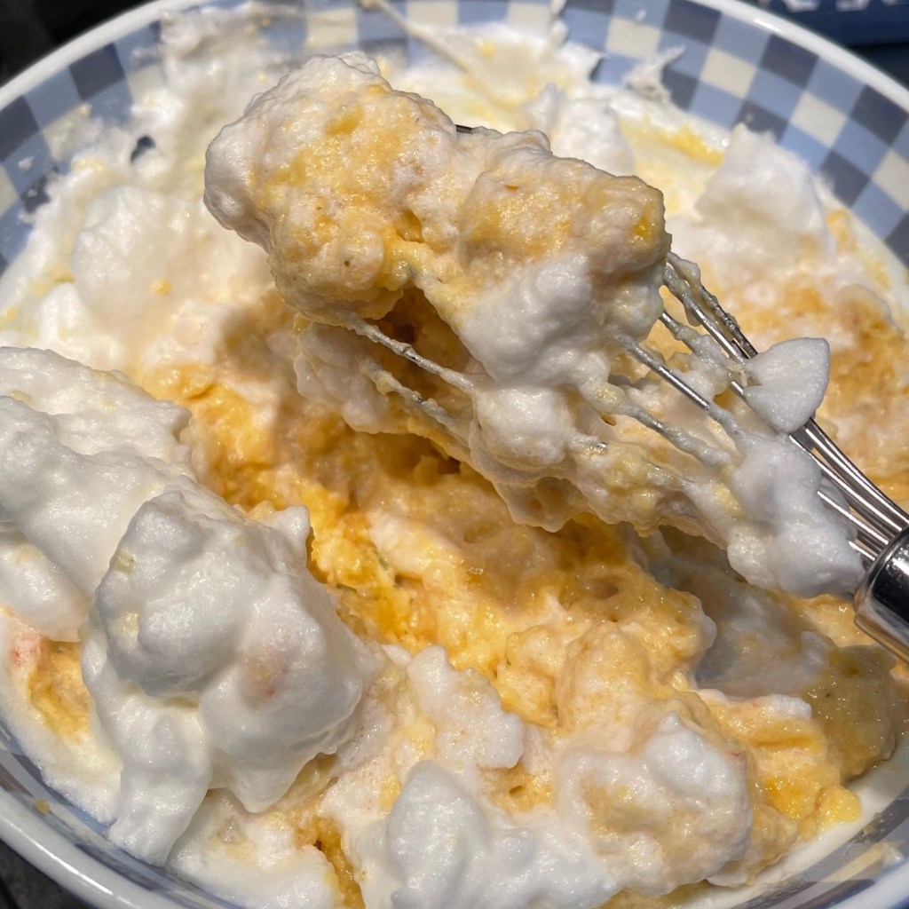 Spoon about 1/3 of beaten whites into the batter and whisk in – you don’t have to be excessively gentle with this just yet.