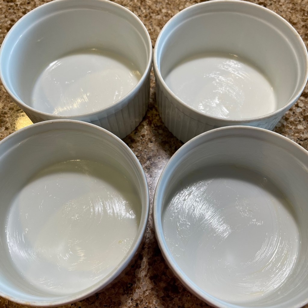 Divide batter amongst the 4 soufflé dishes and put in preheated 200°C (400°F) oven. (It’s easier to manage if you place the dishes on a cookie sheet.)
