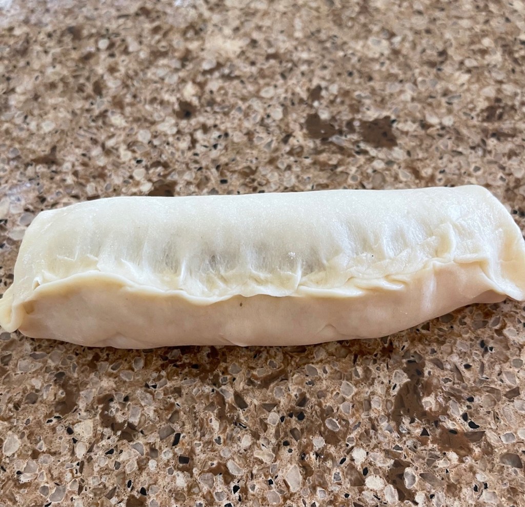 Roll the log towards you 90°, so the seam is facing you. (This is so the seam will be protected from bursting open during baking.)